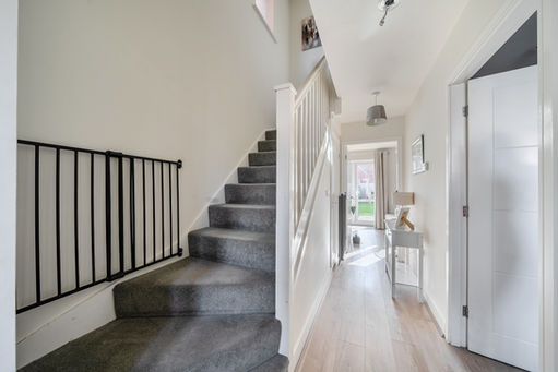 The ground floor accommodation comprises a welcoming entrance hallway with a convenient downstairs cloakroom. To the front of the property, the kitchen/dining room provides a bright and practical space with room for everyday dining. To the rear, the comfortable lounge enjoys views over the garden and features French doors opening directly onto the patio, creating a lovely connection between indoor and outdoor living.